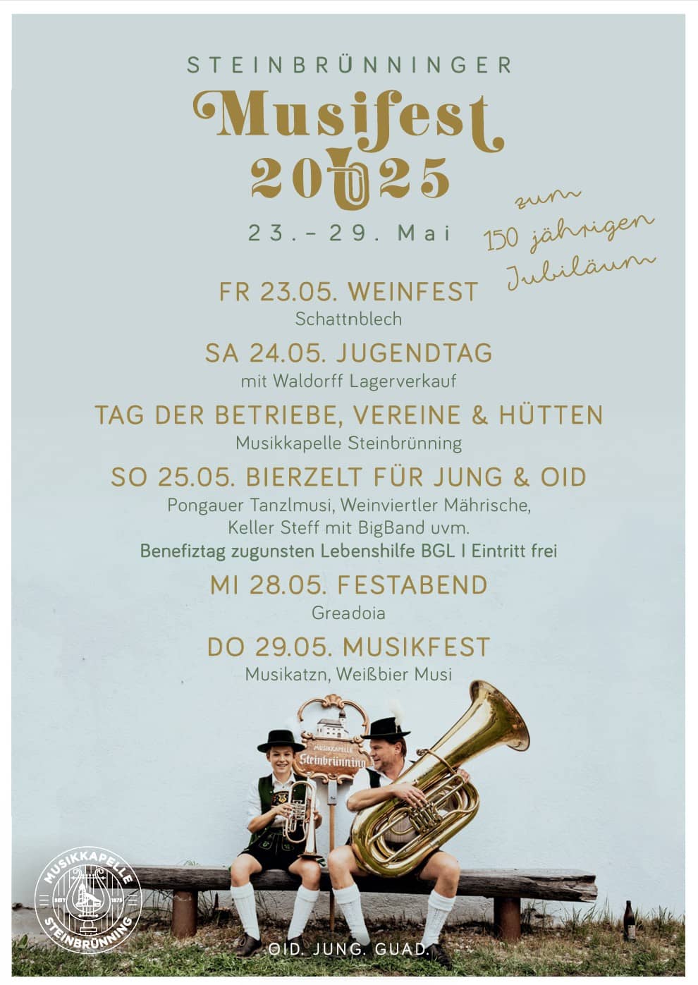 150 Jahre Musikkapelle Steinbrünning - vom 23. bis 29. Mai 2025.